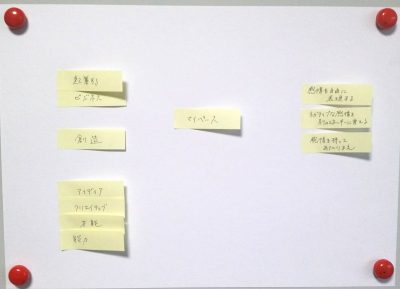 この時点で、同じような言葉、似た言葉、関連付けられる言葉などが、明らかになってくるので、まとめて近くに貼っておきます。